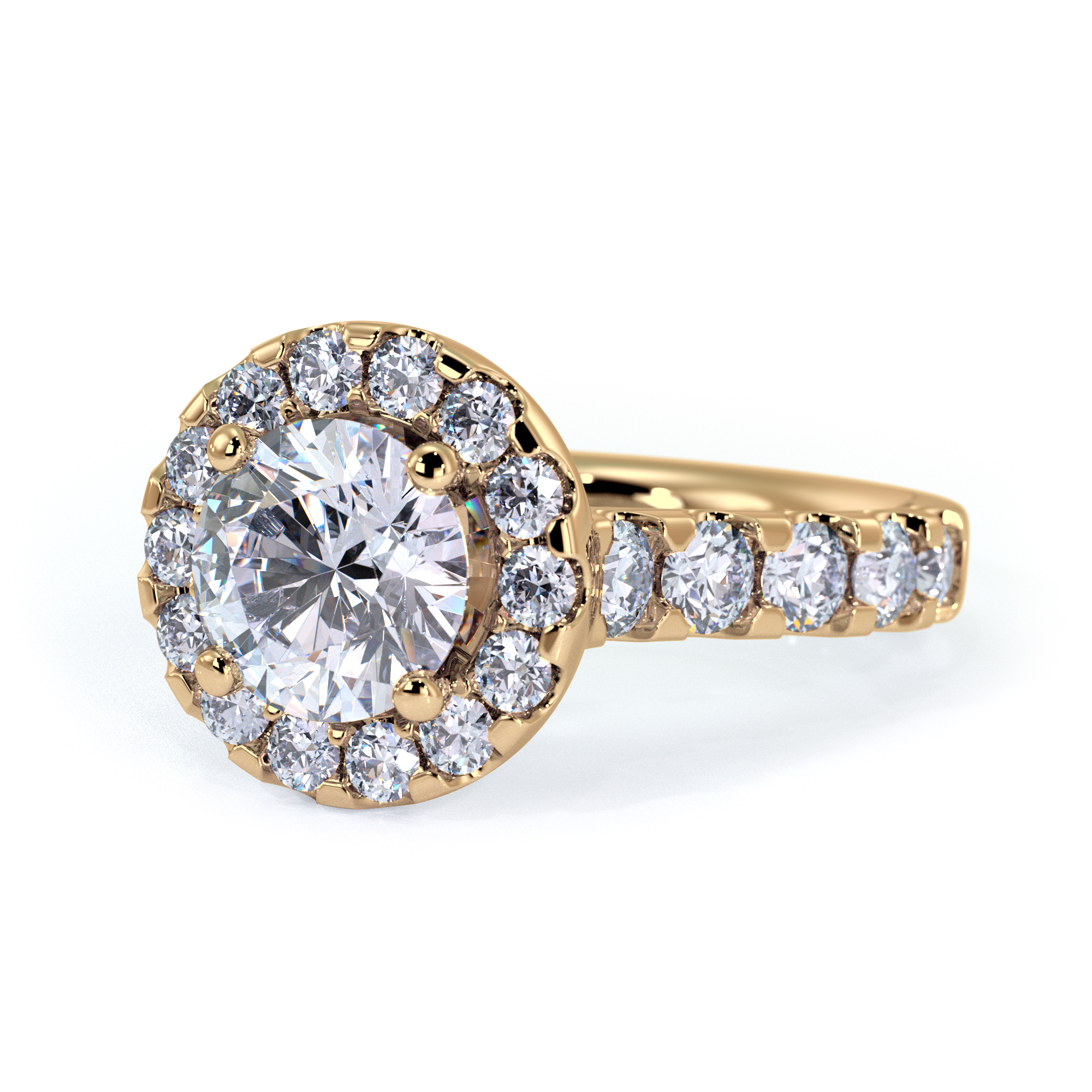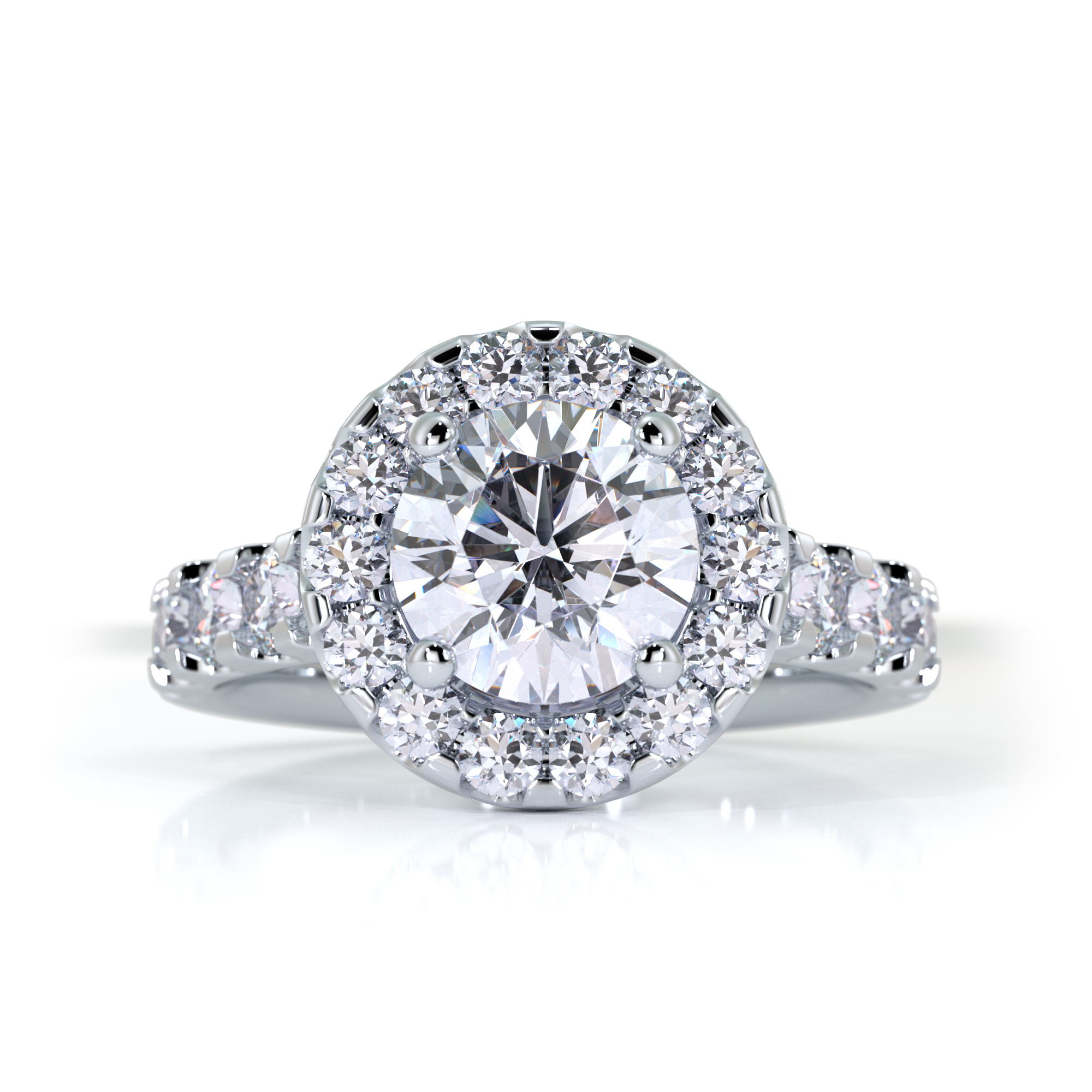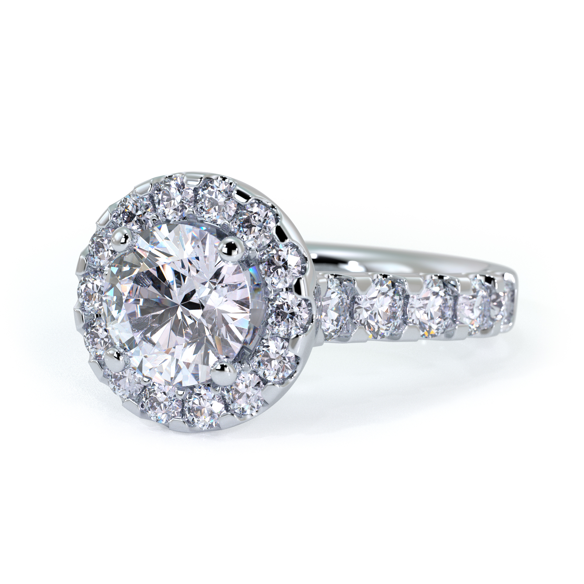Your breath escapes you. Stolen away by the hauntingly beautiful landscape before you. Swirling white crystals catch the light and reflect it back, sparkling like thousands of dazzling diamonds. Crystal waters scattered with tiny mountains of white. No one can say how deep the iceberg grows, as you can only catch a glimpse of its splendor above the aqua water. This ring encapsulates the iceberg’s beauty, as a halo of diamonds hangs effortlessly around the center gem. In likeness to the iceberg, love continues to grow deep below the surface, always expanding. Show her more than what is above the waters, show her how truly deep your love can go.