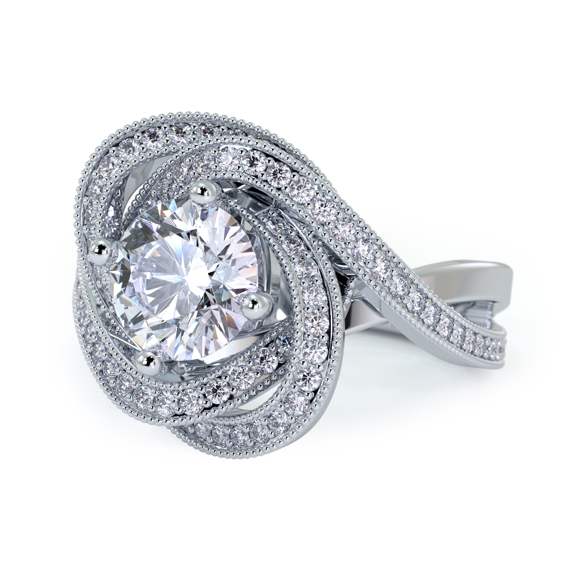 Art, culture, outdoor wonders, a playground for the rich and famous. A town built on silver a hundred and thirty years ago. It inspires so much in so many. It certainly inspired this incredible vintage, pavé ring. A feeling of elegance swirls through the design, harkening back to an untamed time in a rugged, picturesque part of this country. Snow-capped mountains, ice-covered walks, clear, cold streams. Itś all here in this elegantly designed ring.