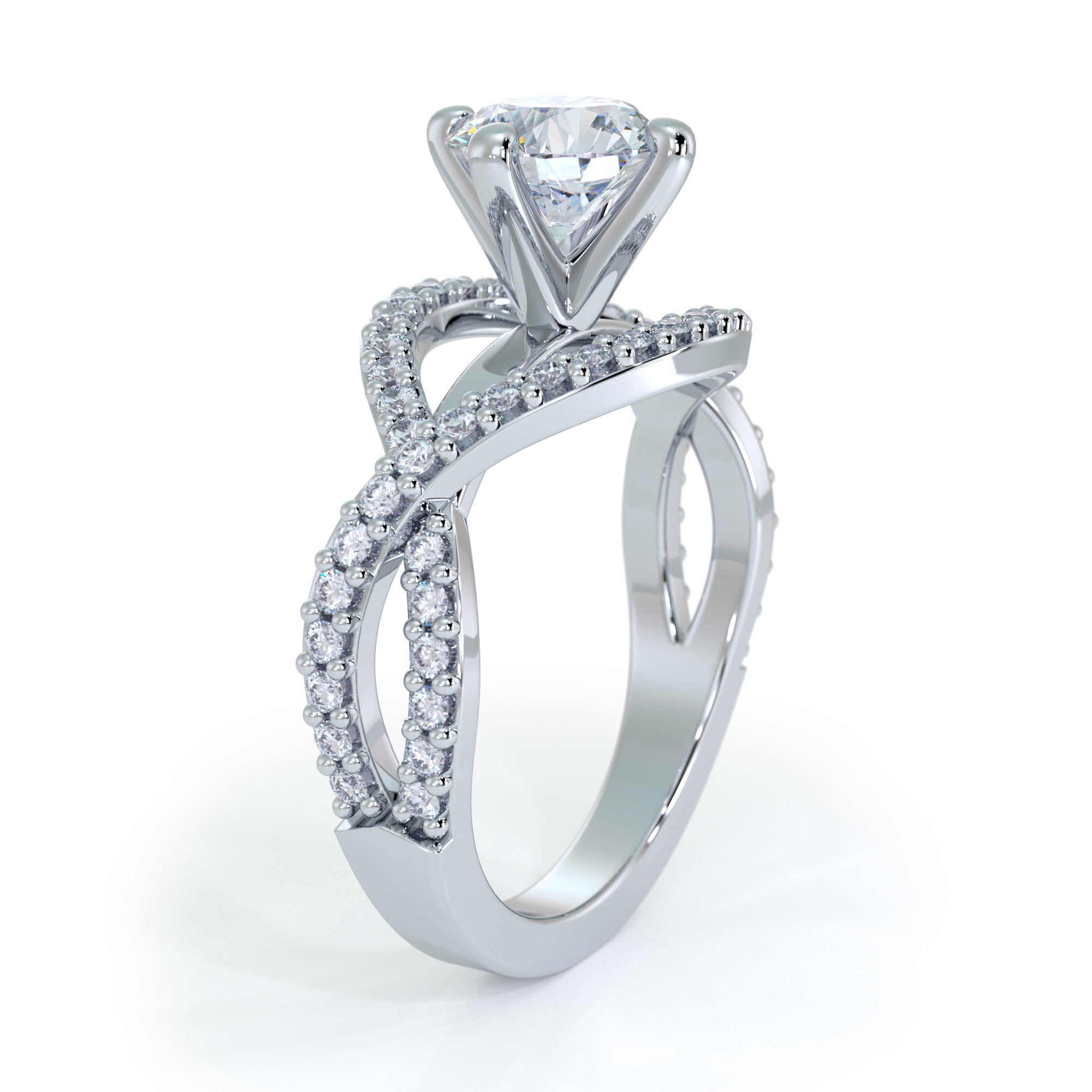 The moon has always been a loyal companion. It envelopes the night in its gentle light and knows us in our most vulnerable moments. It evolves as we do – ever changing to a new phase in its life cycle. The crescent ring embodies this celebration of change. The gentle twist of the intertwined band on this vintage pave style ring perfectly mimics the final phase of the moon cycle as they come together to embrace a solitaire round cut diamond.