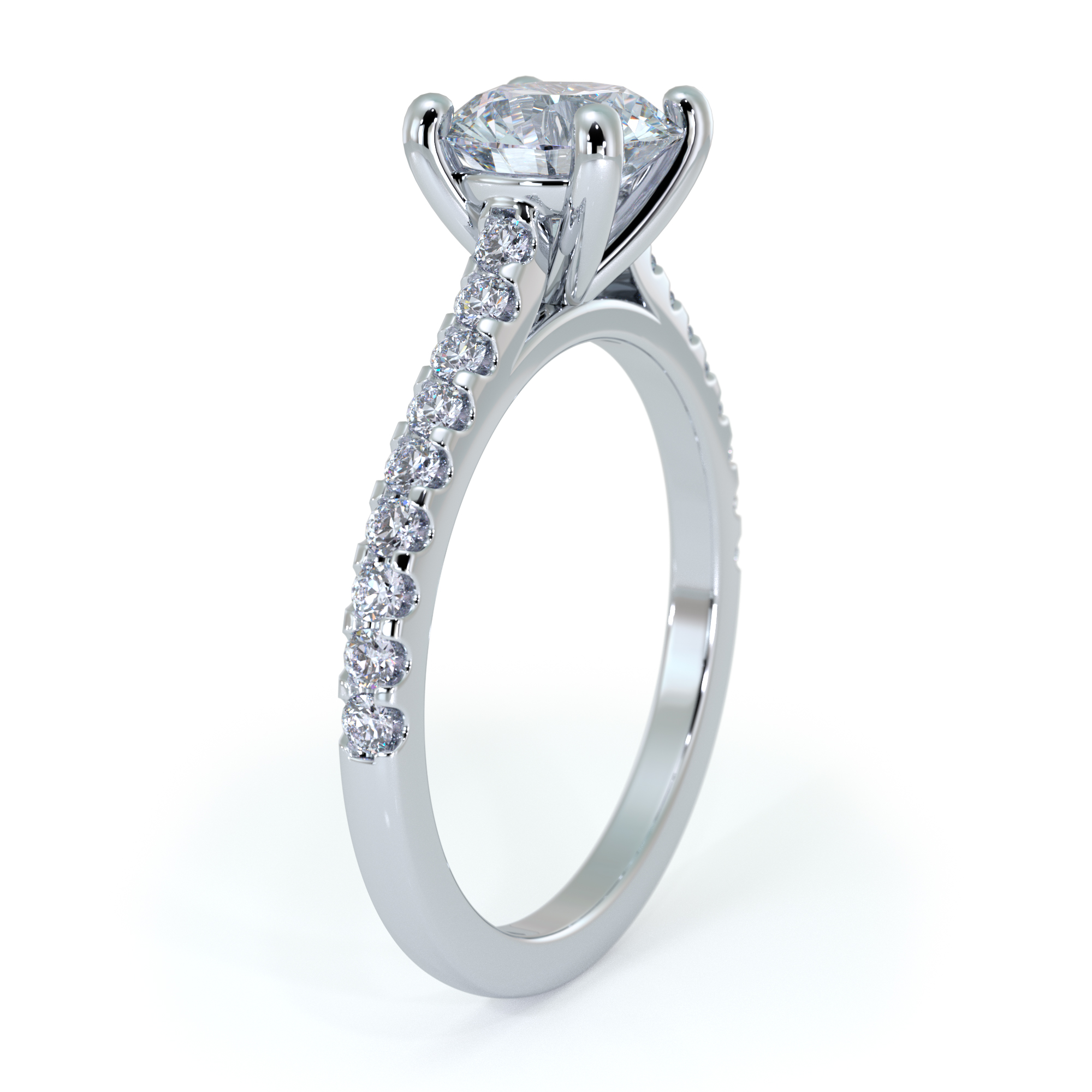 Its solitaire diamond shines brightly among the pave style band, a guiding light whose radiance draws you into an incandescent embrace. Bespoke of its namesake Helena, the daughter of Zeus. Whose divine beauty had Theseus so enamored that he carried her off so that no one could bask in her warm glow.