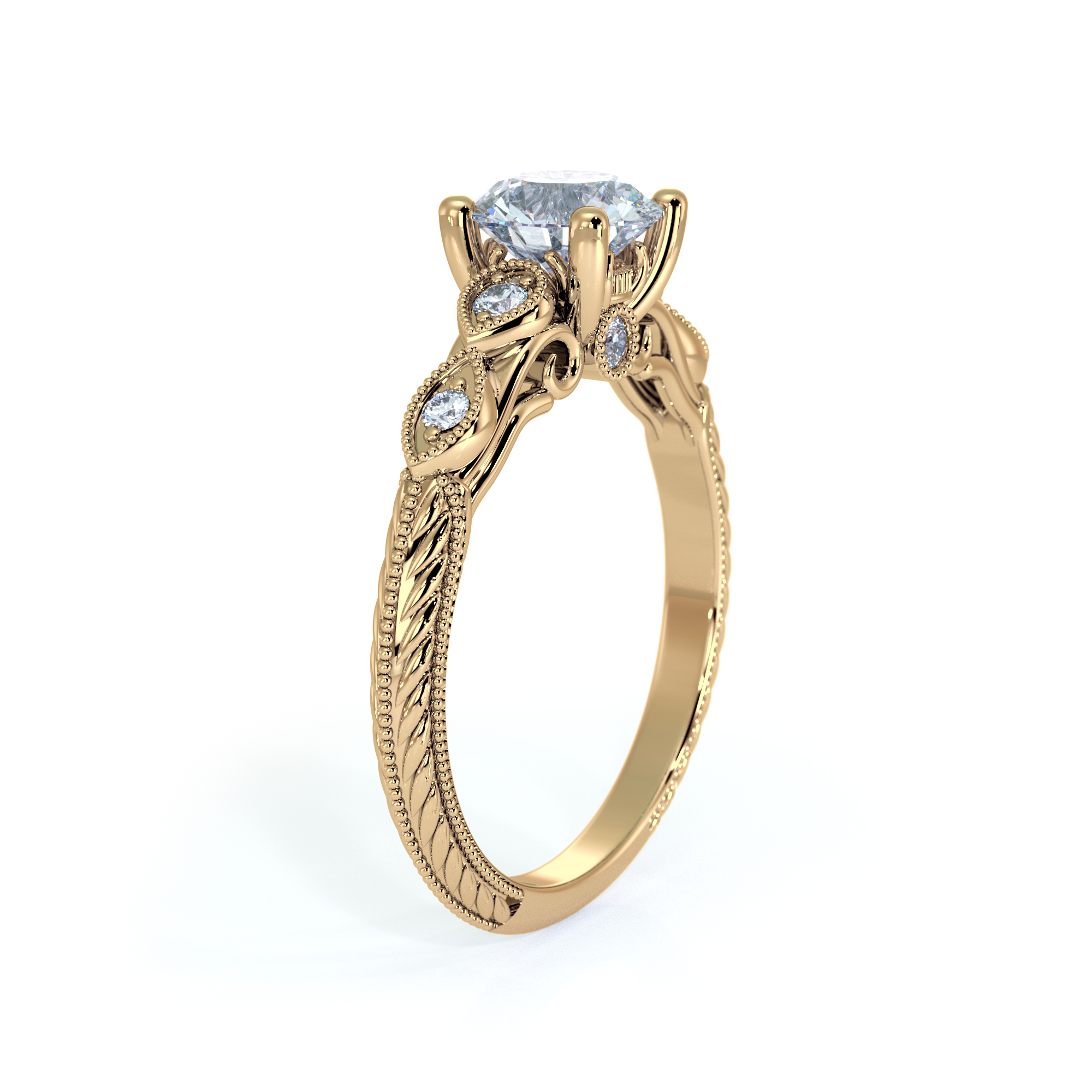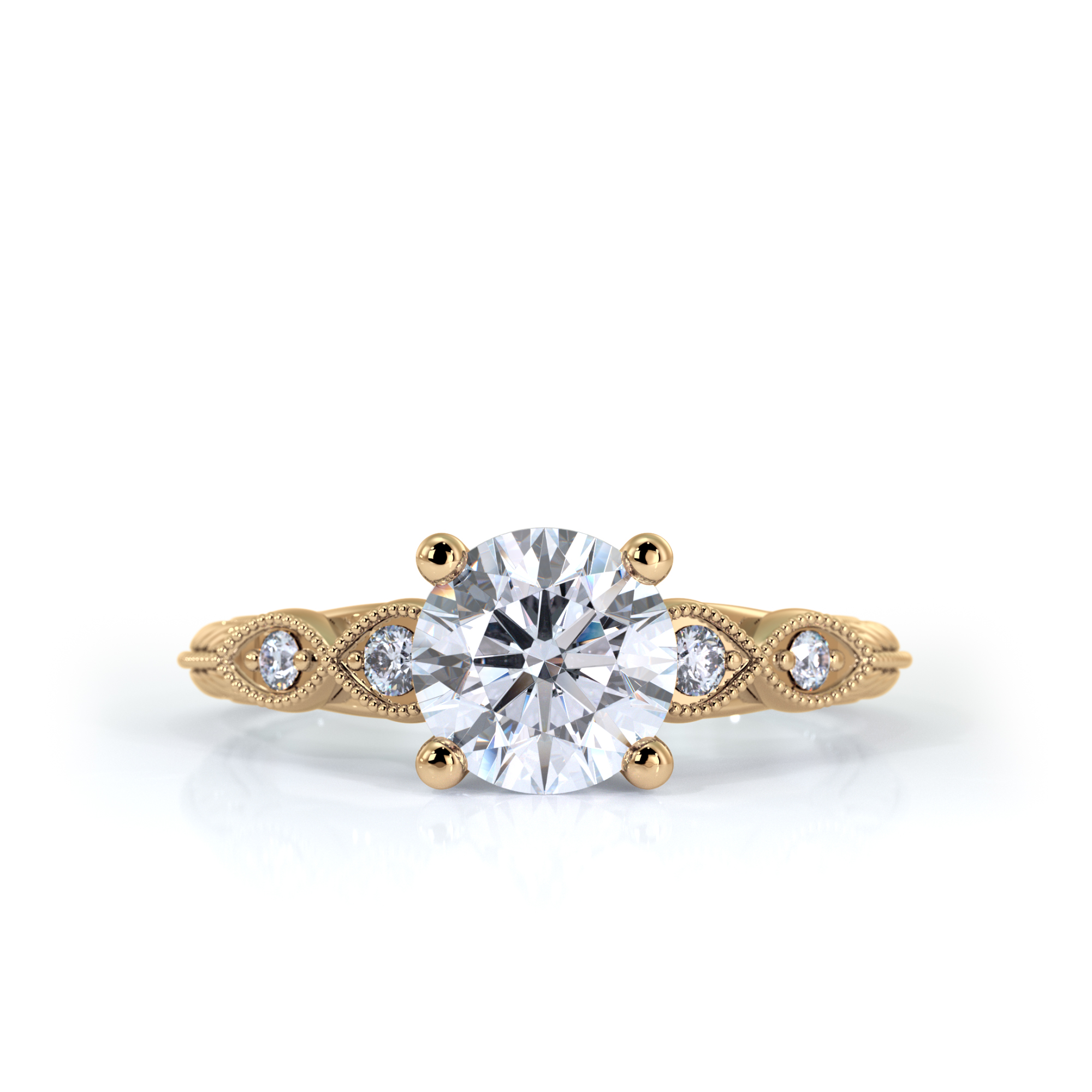 When you think elevated, great, magnificent, you’re thinking Madeleine. This sweet, yellow gold ring is all those things. Its vintage style is pure grace and elegance, like a showcase of a past that still lingers in the mind and the heart. Like a sunset or a crystal river cut through mountainous land, this ring leaves an indelible impression. Perfect for the one who caught your eye and changed it all for life.