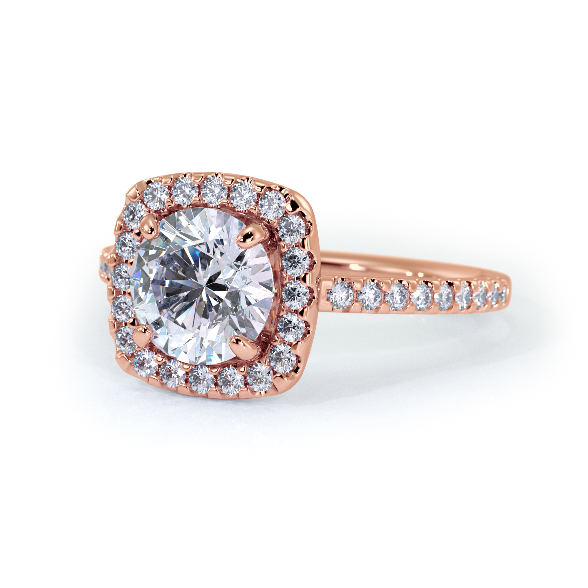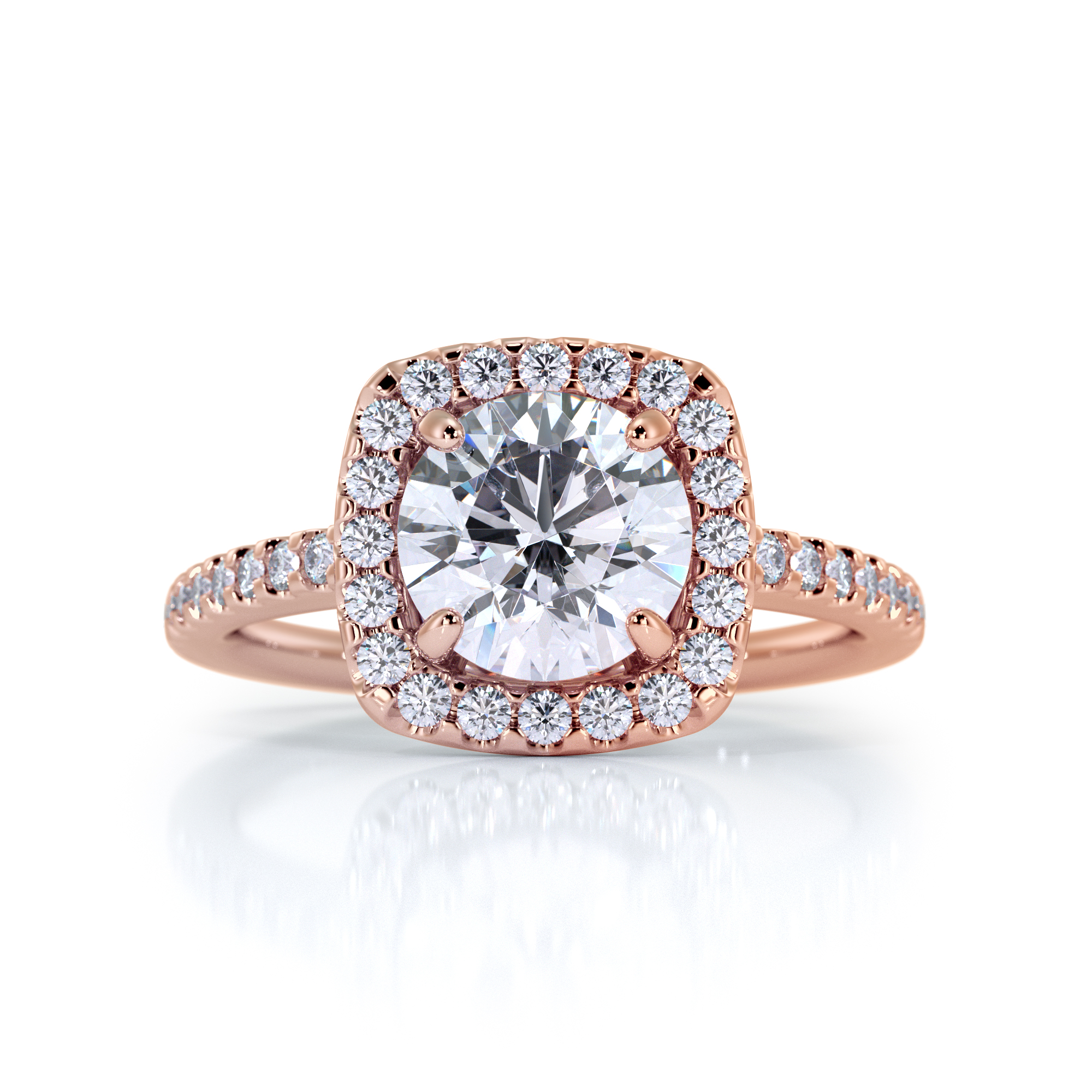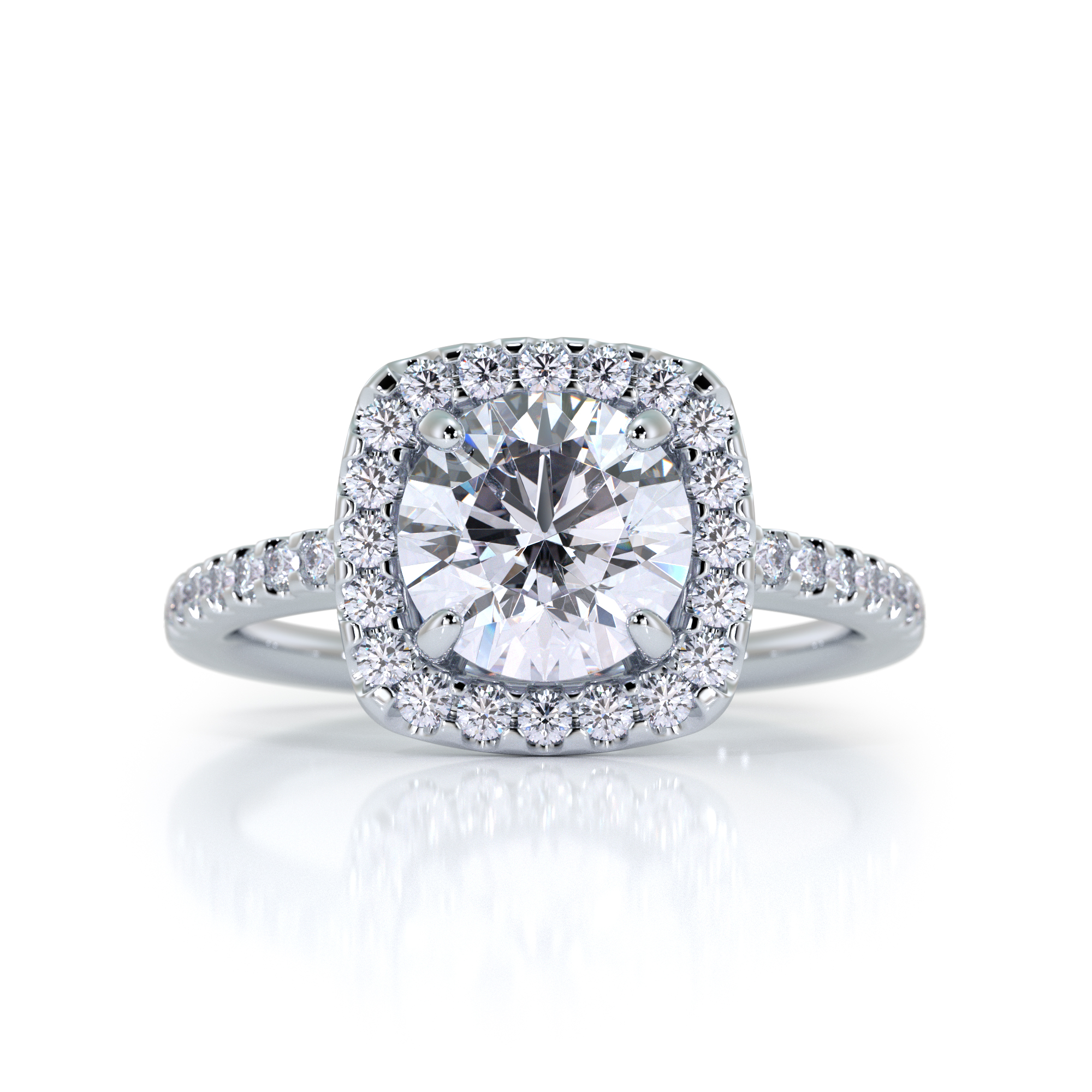 This sweet, petite Halo diamond ring is more in a dainty presentation. A beautiful single stone surrounded by accent diamonds that trail down the shank giving this small wonder a big, bright beauty. Moran means more and when looking for the perfect expression of your love more is always more.
