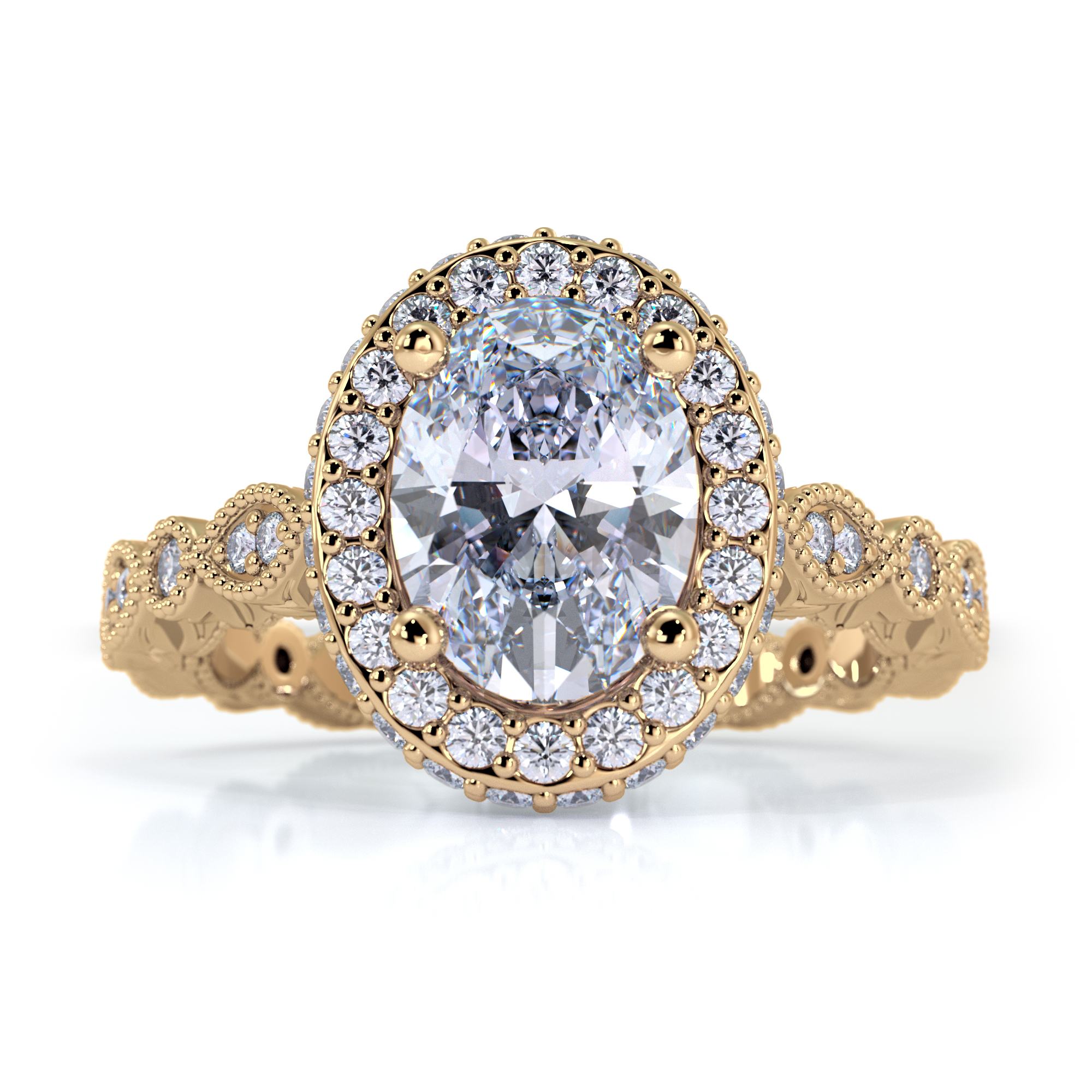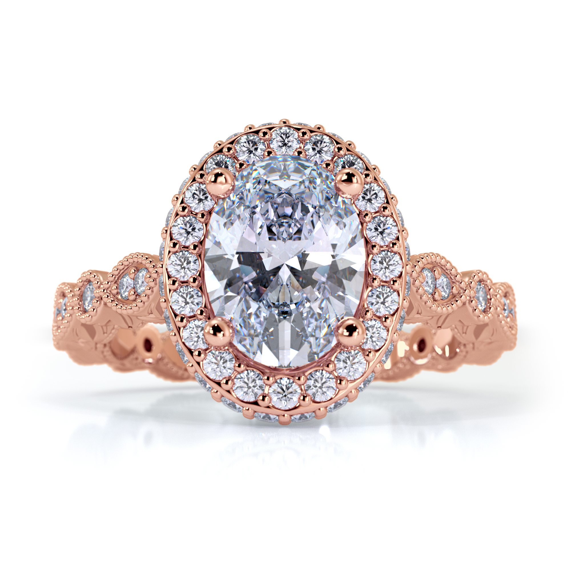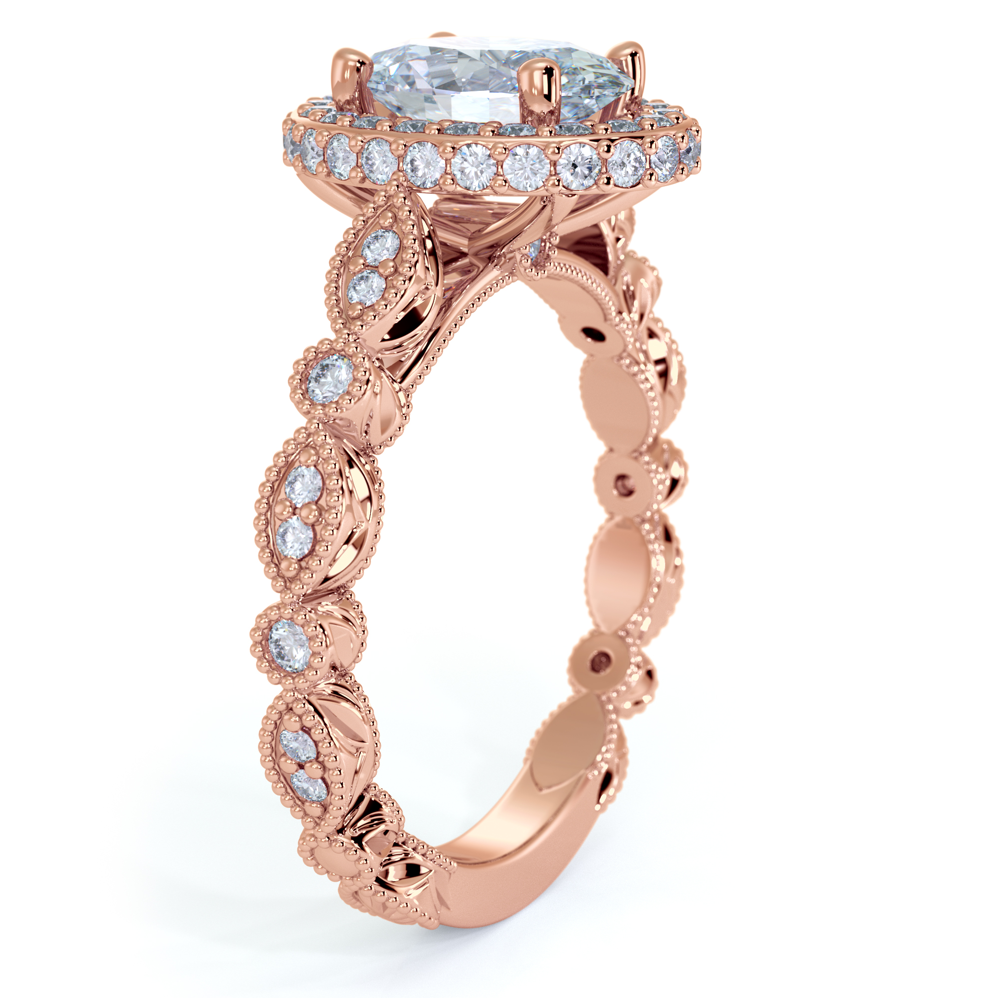 This lustrous and delicate halo diamond takes its name from the famous pine tree. A rugged and audacious species that grows where no other tree would dare. This ring is delicate and intricate, seemingly the opposite of its namesake tree. But, its brilliance in design makes it stand out among all others, causing one to stop, stare and be overcome with its unique beauty. The delicately carved band with its accent diamonds, hides a secret, unexpected strength, much like the ponderosa hides an unexpected vanilla scent in the bark. Majestic and mysterious like the impressive tree itself.