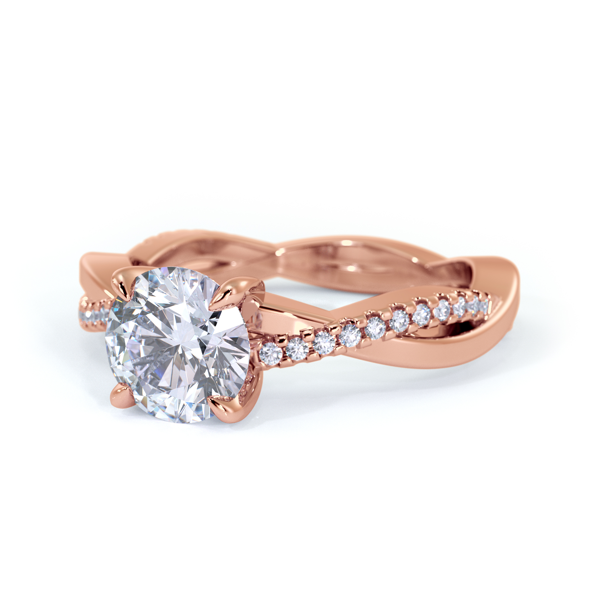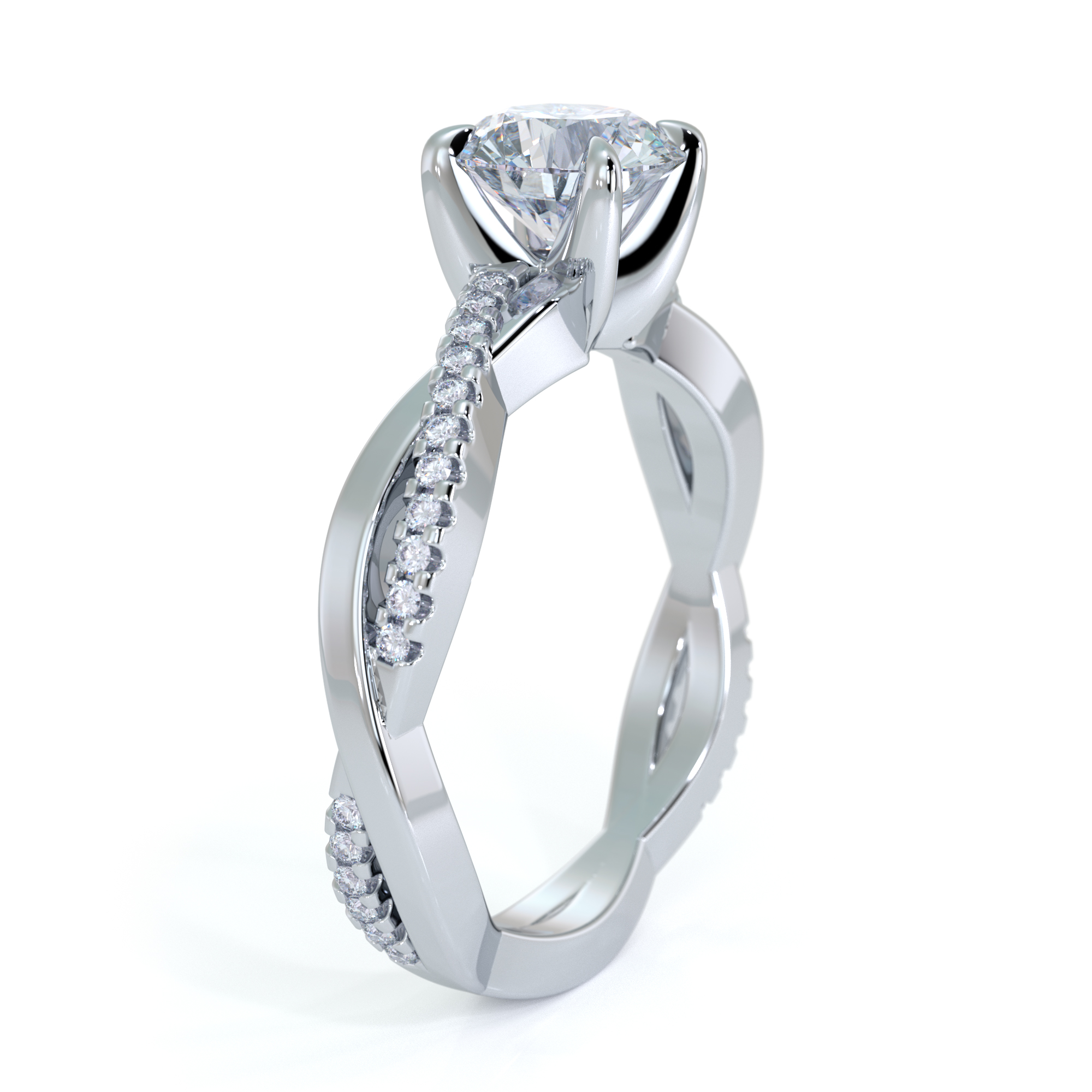 Fresh powder on a morning mountain. Wrapped like blankets over the bottom of trees, covering rocks and fields, catching the morning sun as it crests the ridges and reflects it back in diamond delight, sparkling brilliance, breathtaking glitter. This intricate, spinning pavé style ring is like nature’s pure powder jewelry entwined on tree branches, dripping like dazzling dreams, making all the world feel like a fantasy in motion and memory.  This feeling is echoed in the twisting of the band. A ring that catches that kind of natural perfection and gives you that feeling forever. When nature inspires she doesn’t do it in half measures. As magnificent as that morning moment, seeing fresh powder covering the world, this ring takes your breath away and glistens like nature’s own hand.